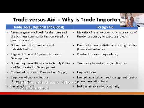 Due to post Covid-19 economic recovery, global competition to secure trade and investment opportunities is at an all time high. Africa is therefore competing with the rest of the world and must shift from FOREIGN AID to FOREIGN TRADE. Effective Trade and Investment Facilitation must be prioritized. Watch clip from my 3 hour Masterclass below where I share differences between Aid and Trade and why Foreign Trade should become top priority for Africa (clip video link: https://www.youtube.com/watch?v=D5u3xWwsXUY )